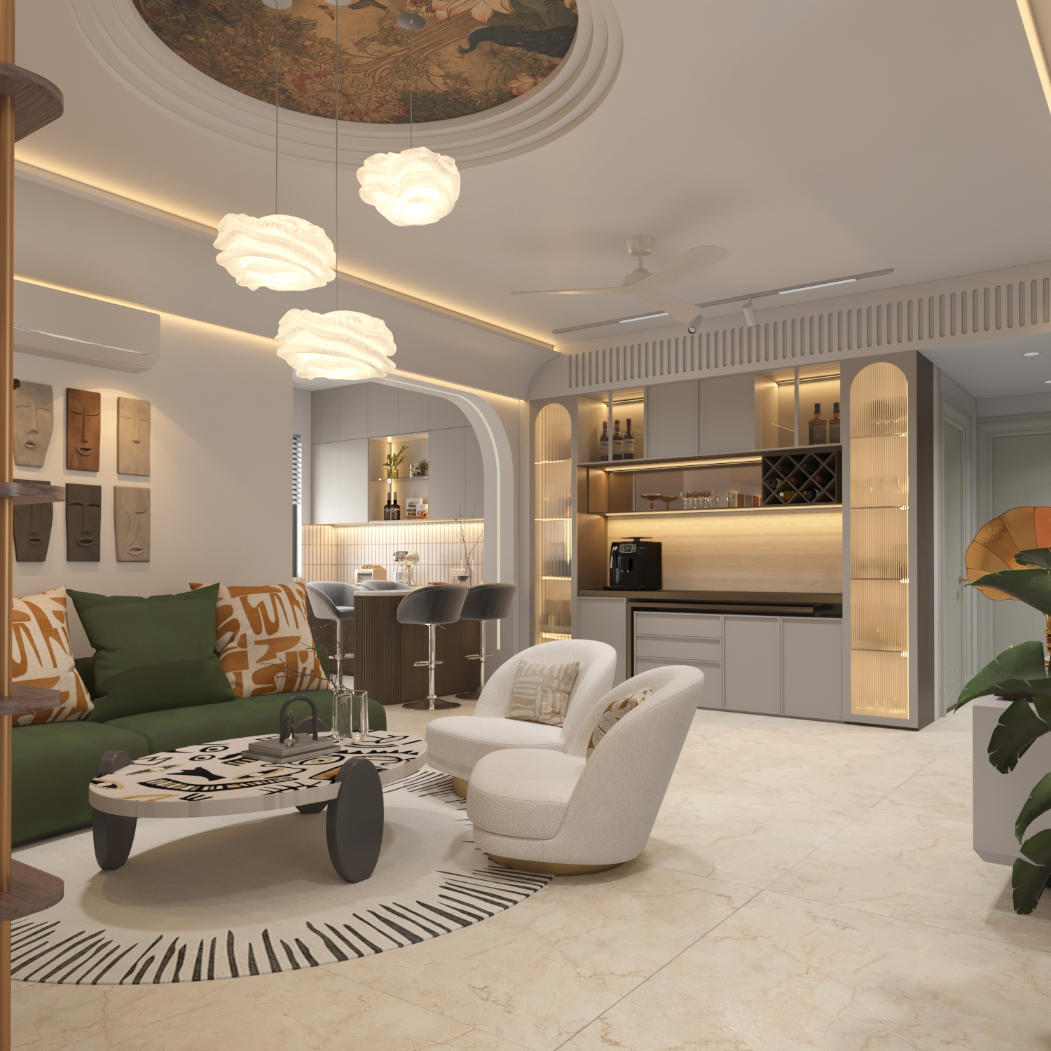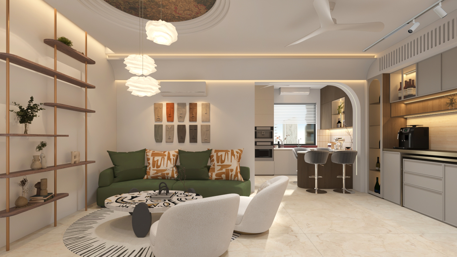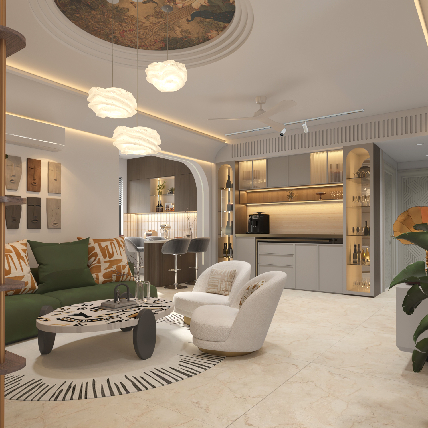 Contemporary planning and modern design sensibilities were paired with a vibrant color palette and curated art elements inspired by Amsterdam’s artistic character, Africa’s rich textures, and Kolkata’s cultural warmth. The result is a modern yet expressive home that reflects the client’s journey, personality, and appreciation for art, while maintaining a refined and functional living environment.