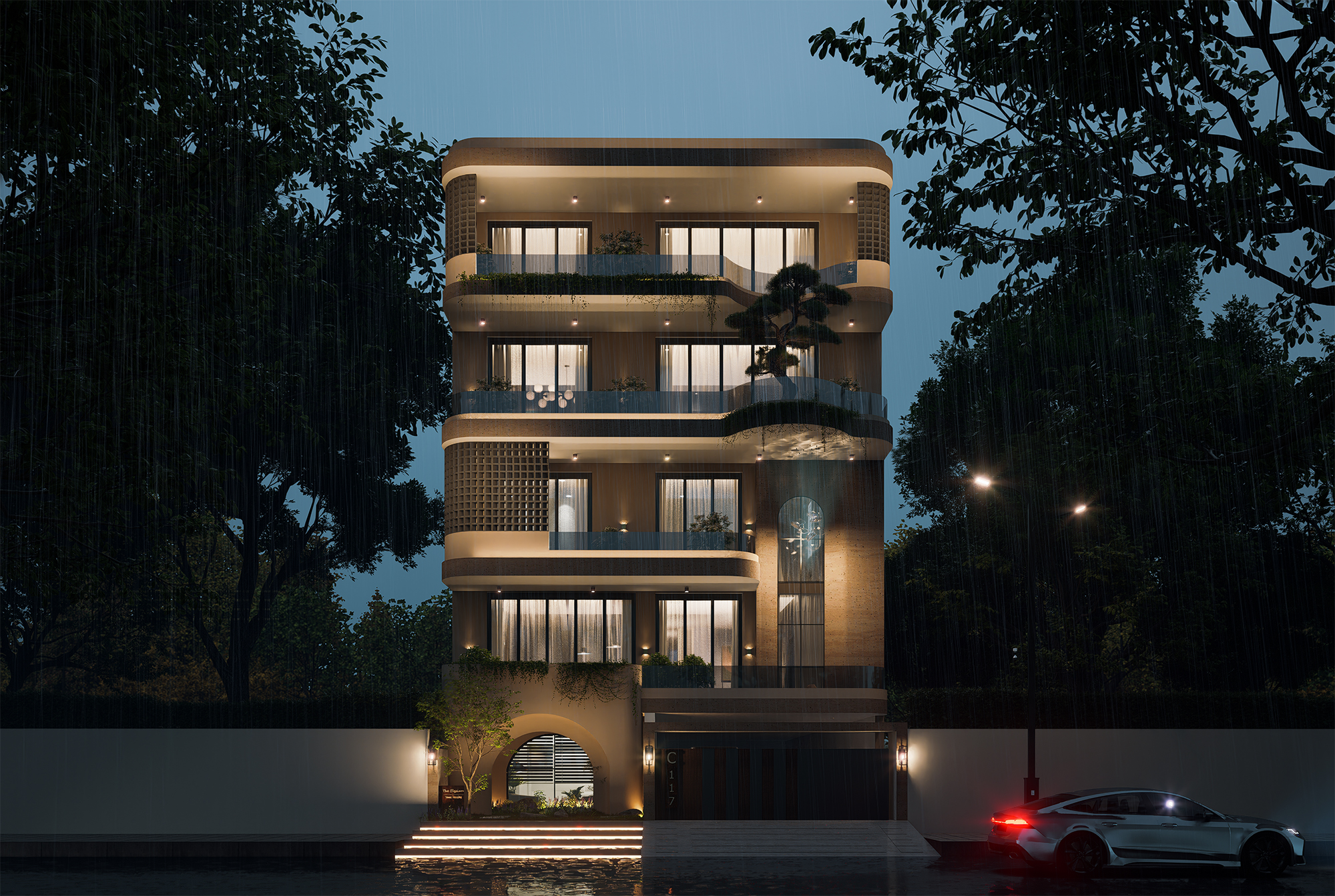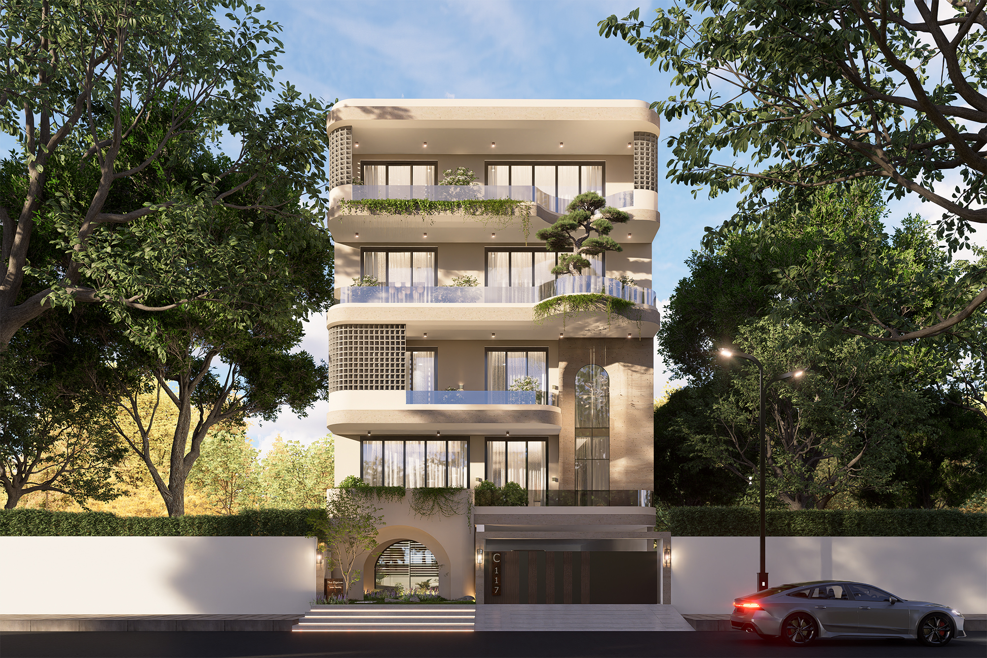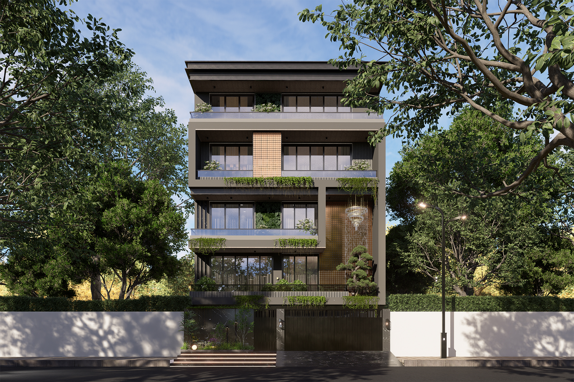 Villa C117 at BPTP Amstoria was designed with the intent of creating a single, cohesive residence rather than four independent builder floors. Kove Design Studio developed a modern architectural language defined by clean lines and a strong, structured form, aligning with the client’s contemporary taste.